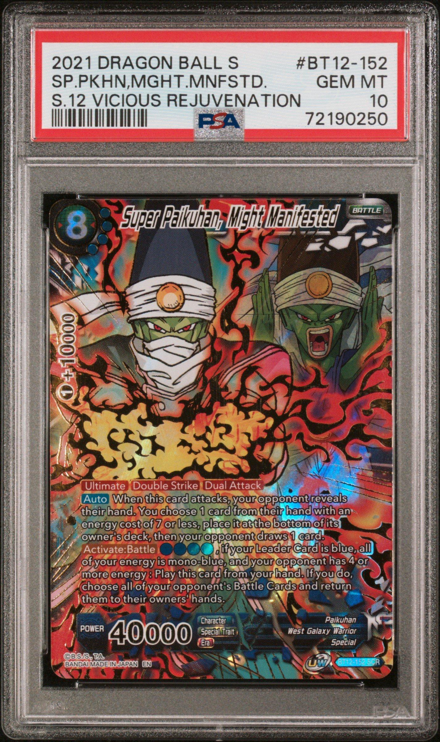 2021 Dragon Ball Super Card Game Series 12 Vicious Rejuvenation Bt12-152 Super Paikuhan-might Manifested Secret Rare PSA 10