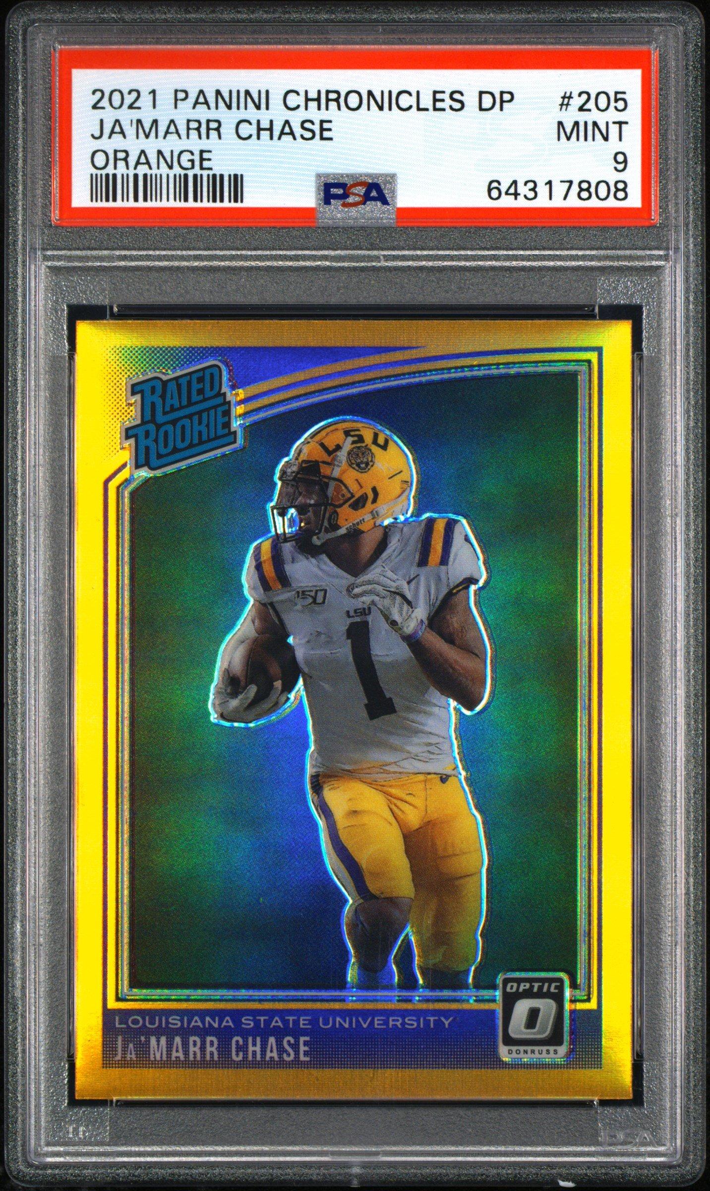 2021 Panini Chronicles Draft Picks 205 Ja'marr Chase Orange PSA 9