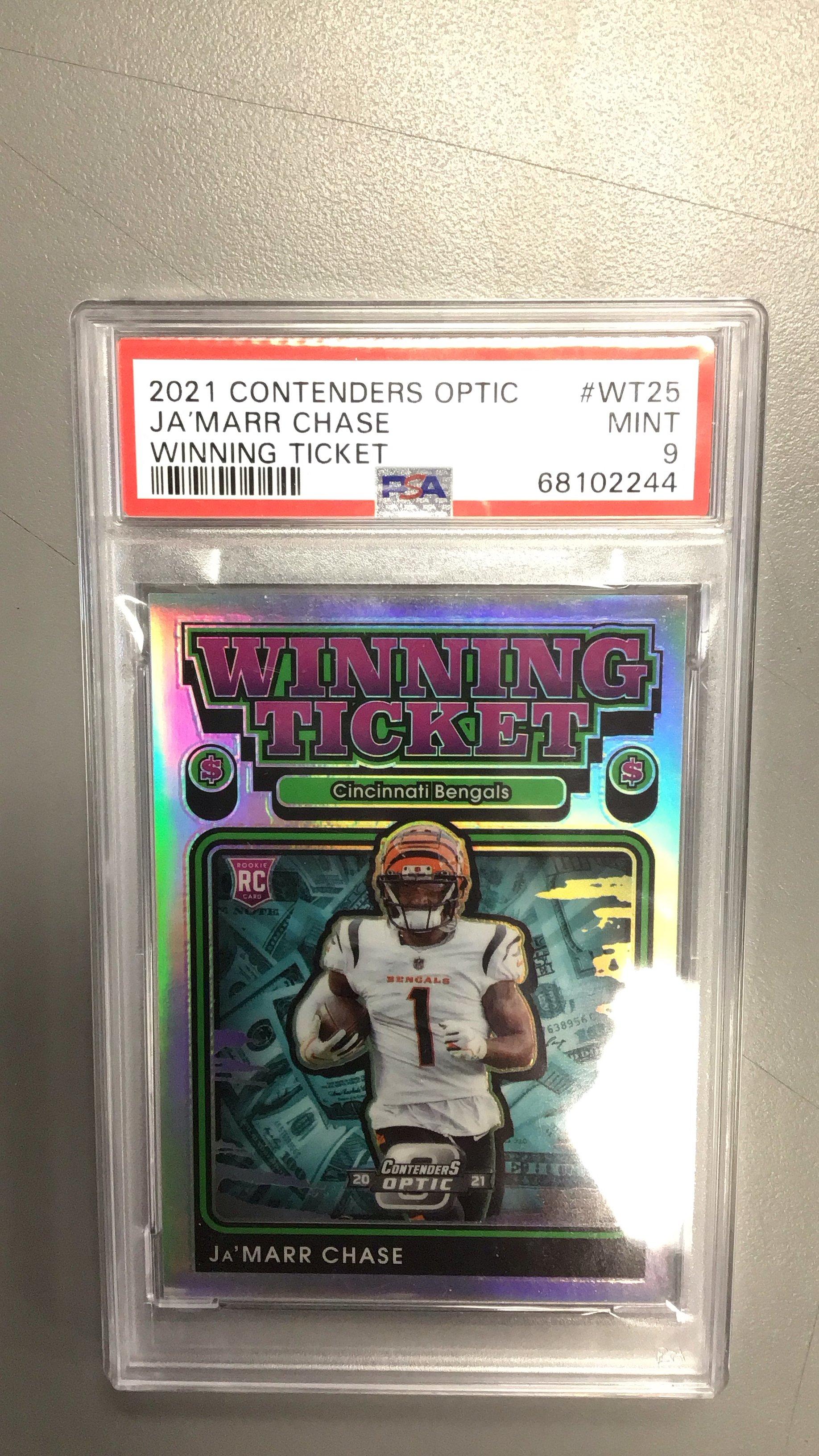2021 Panini Contenders Optic Winning Tickets Wt25 Ja’marr Chase PSA 92021 Panini Contenders Optic Winning Tickets Wt25 Ja’marr Chase PSA 9