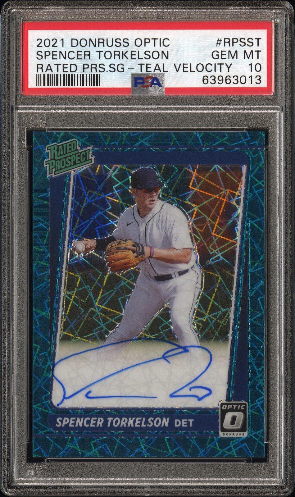 2021 Panini Donruss Optic Rated Prospect Signatures Rpsst Spencer Torkelson Teal Velocity PSA 10