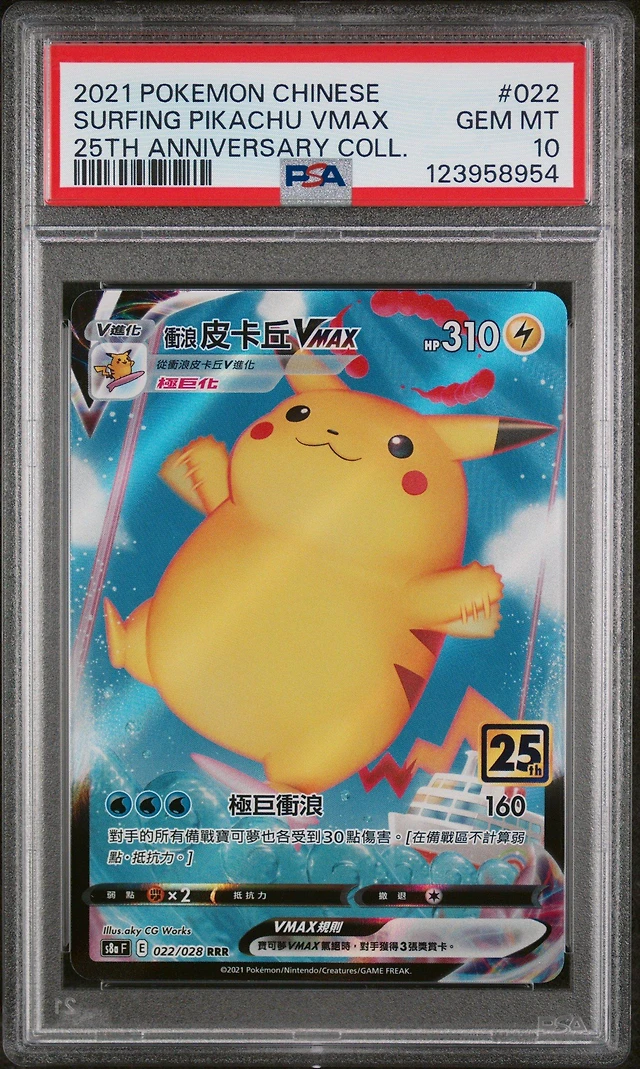 2021 Pokemon Chinese 25th Anniversary Collection 022 Full Art/surfing Pikachu Vmax PSA 10