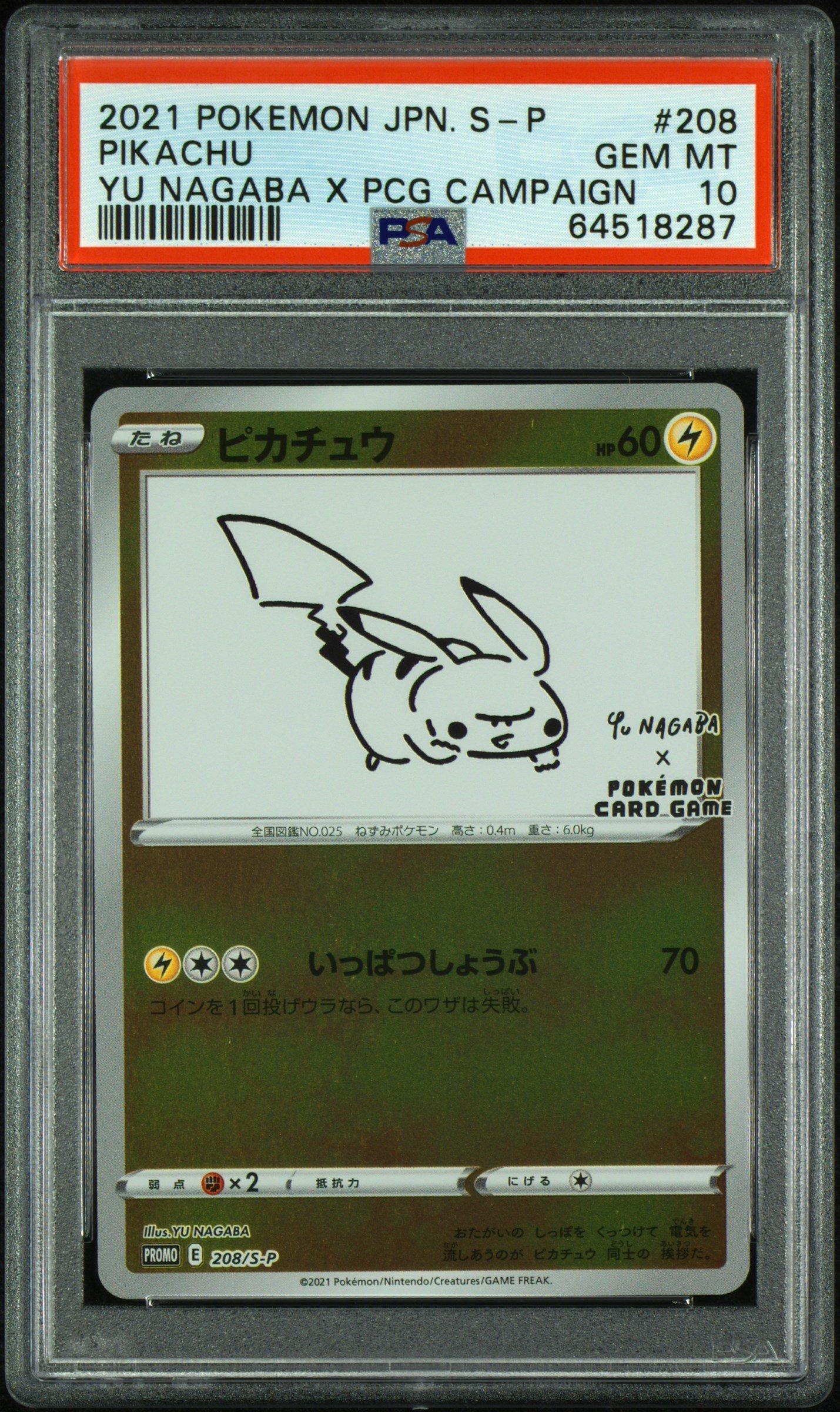 2021 Pokemon Japanese S Promo 208 Pikachu Yu Nagaba X Pokemon Card Game Campaign PSA
