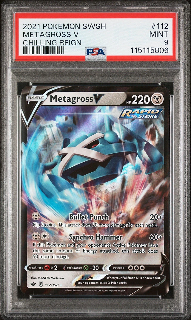 2021 Pokemon Sword & Shield Chilling Reign 112 Metagross V PSA
