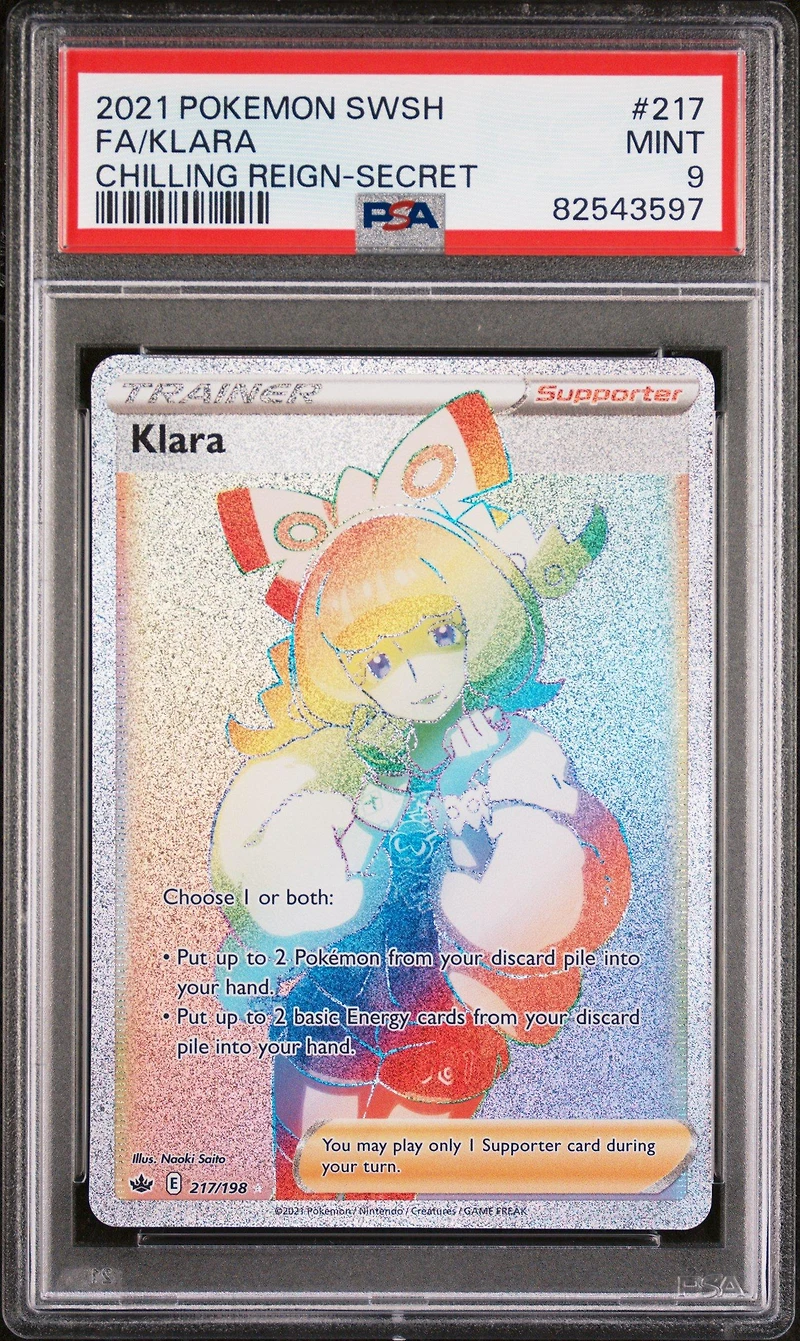 2021 Pokemon Sword & Shield Chilling Reign 217 Full Art/klara Secret PSA 9