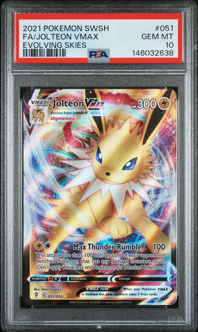 2021 Pokemon Sword & Shield Evolving Skies 051 Full Art/jolteon Vmax PSA 10