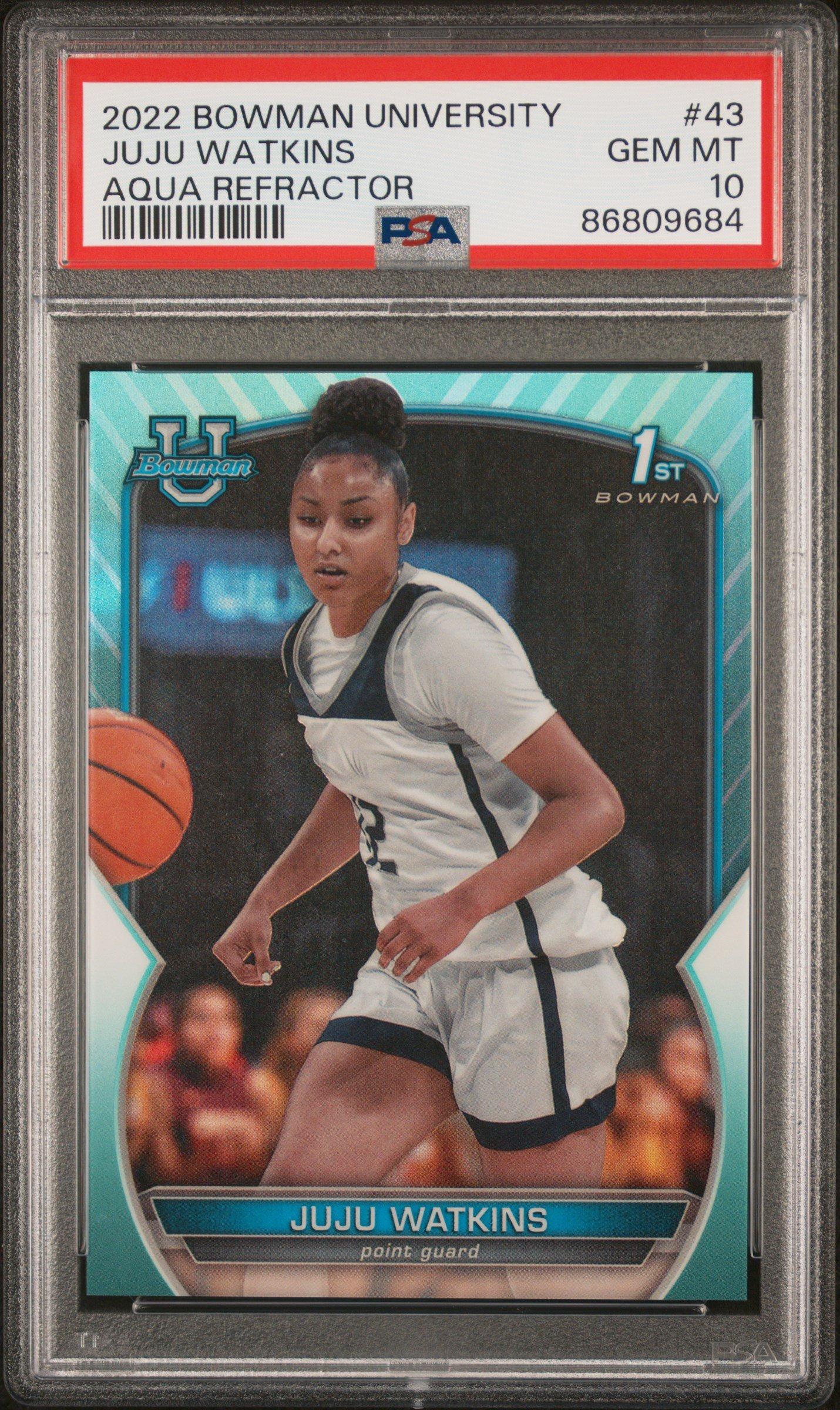 2022 Bowman Chrome University 43 Juju Watkins Aqua Refractor PSA 10