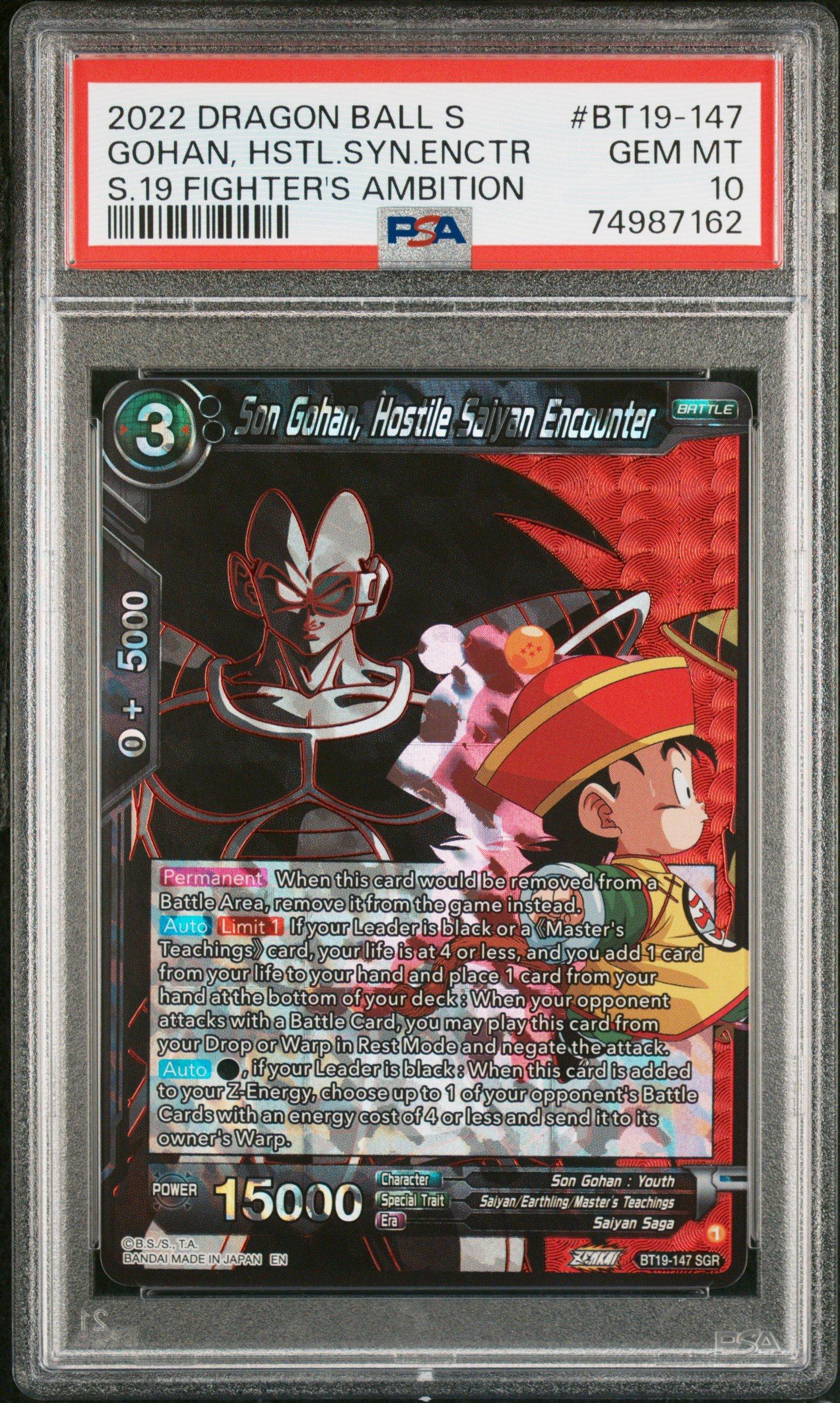 2022 Dragon Ball Super Card Game Series 19 Fighter's Ambition Bt19-147 Son Gohan, Hostile Saiyan Encounter Son Gohan Rare PSA 10