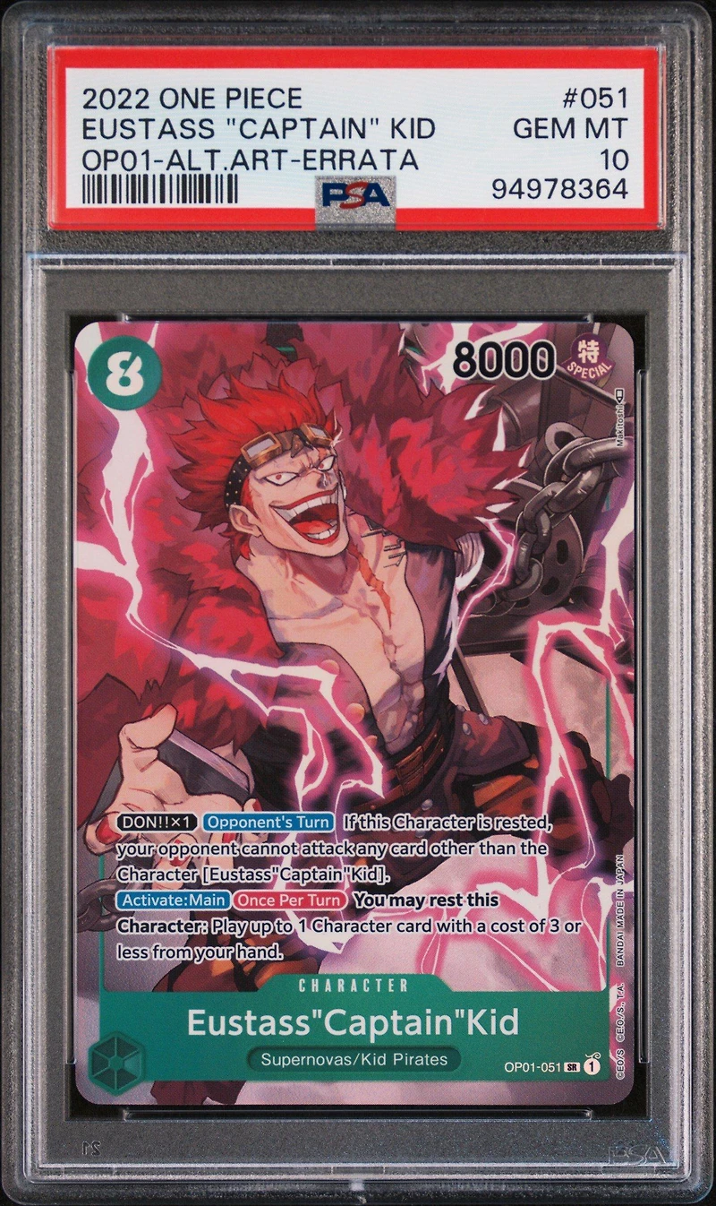 2022 One Piece Op01-romance Dawn 051 Eustass "captain" Kid Alternate Art-errata PSA 10