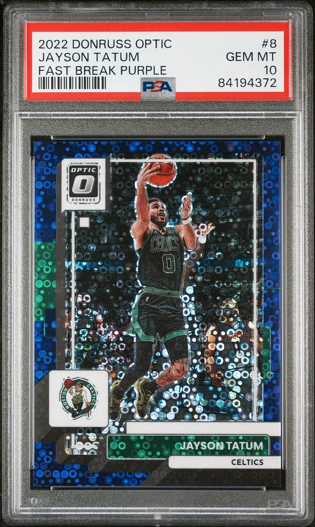 2022 Panini Donruss Optic 8 Jayson Tatum Fast Break Purple PSA 10