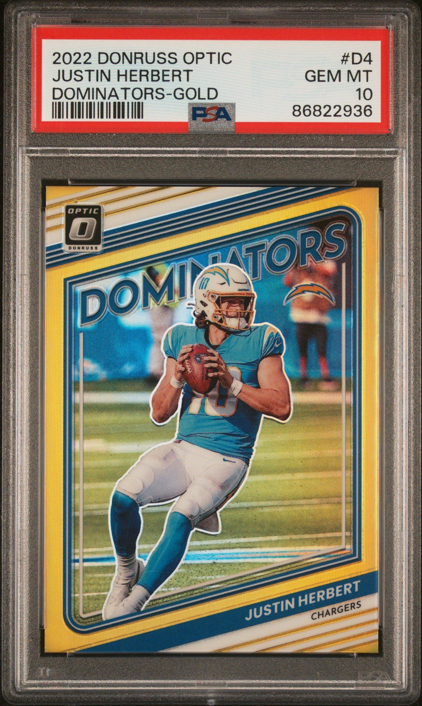 2022 Panini Donruss Optic Dominators D4 Justin Herbert Gold PSA 10