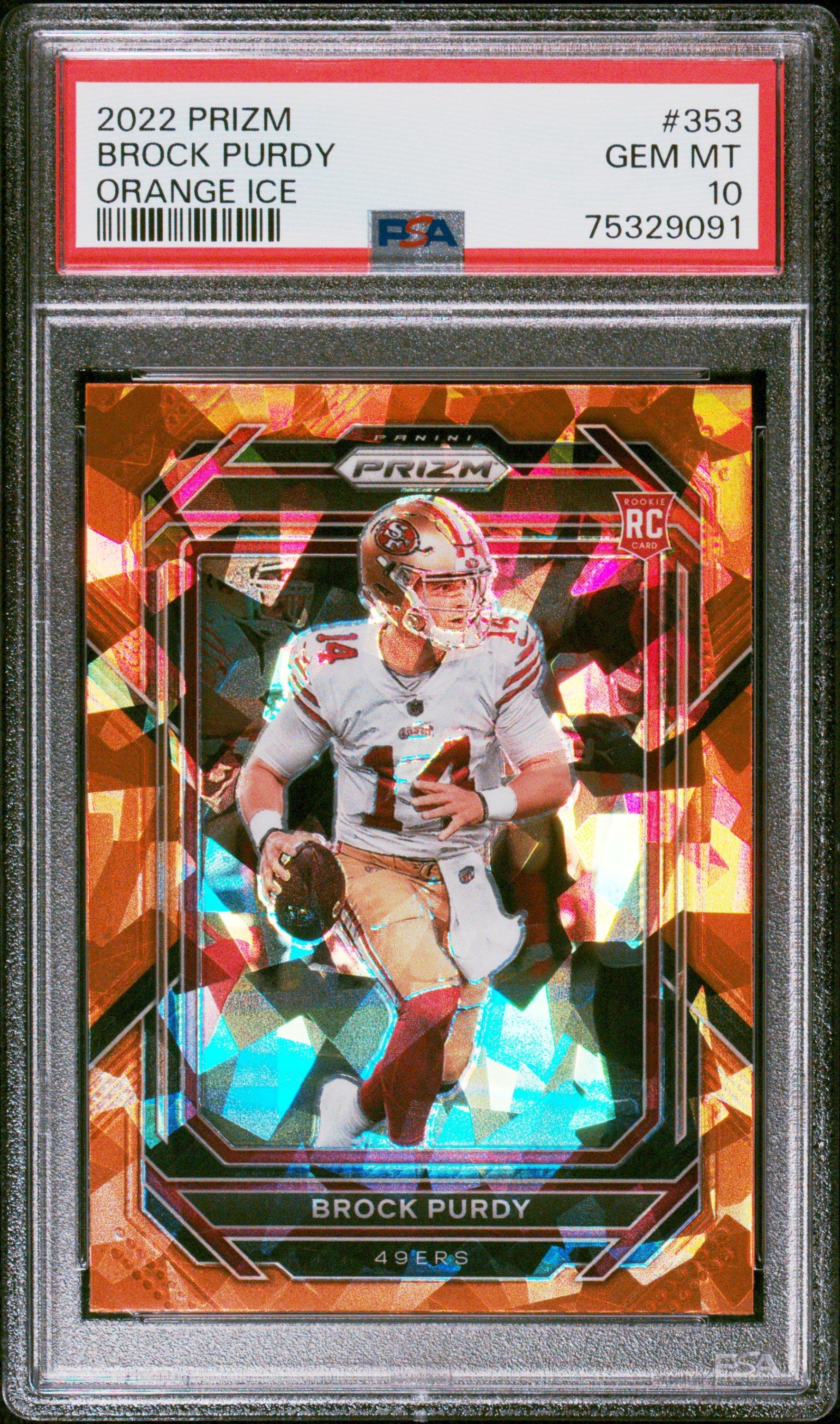 2022 Panini Prizm 353 Brock Purdy Orange Ice PSA 10
