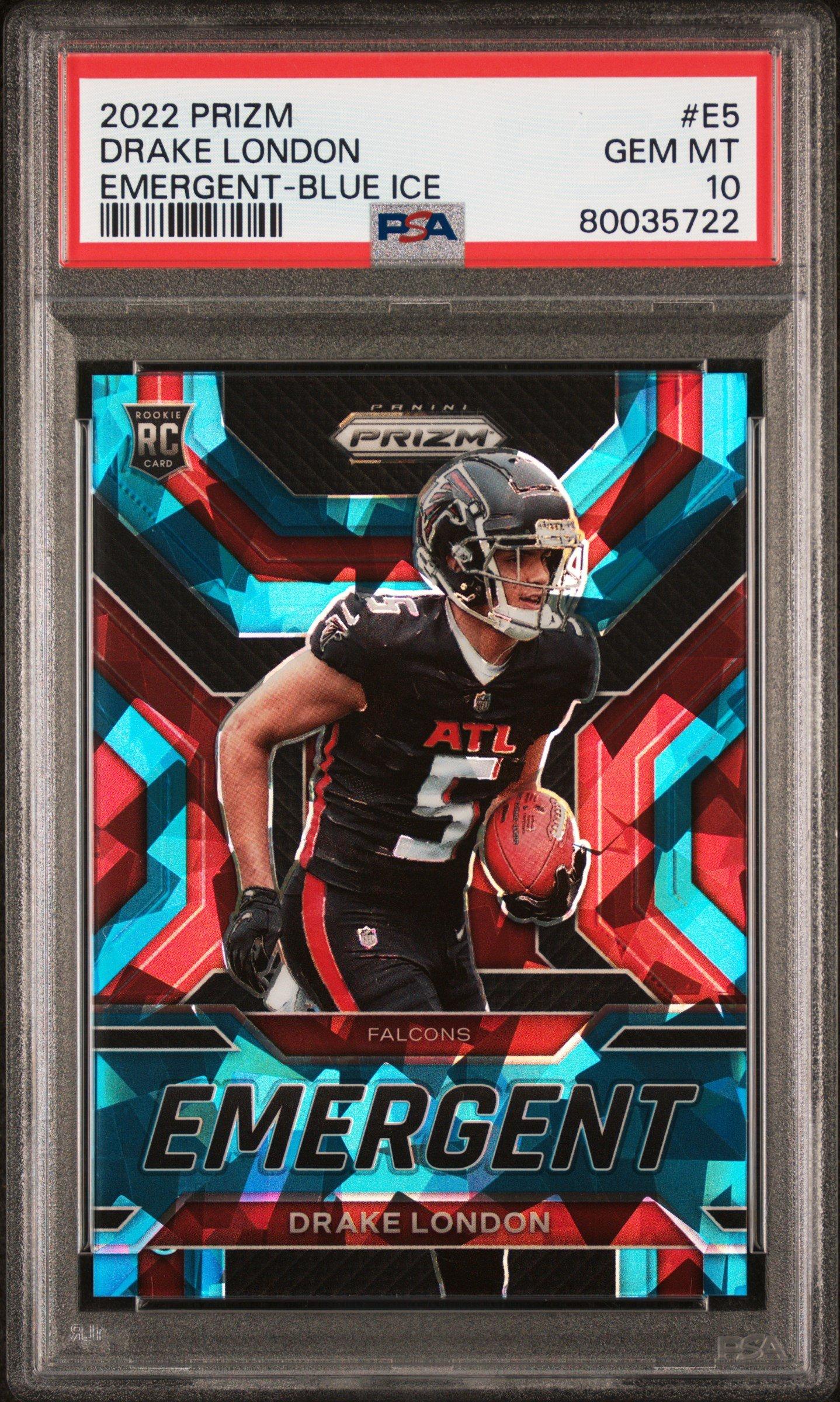 2022 Panini Prizm Emergent E5 Drake London Blue Ice PSA 10