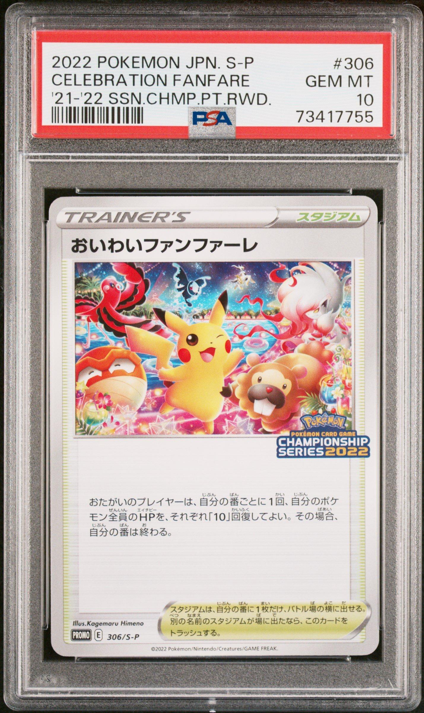 2022 Pokemon Japanese S Promo 306 Celebration Fanfare '21-'22 Season Championship Point Reward PSA 10