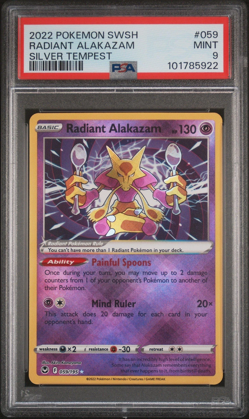 2022 Pokemon Sword & Shield Silver Tempest 059 Radiant Alakazam PSA 9