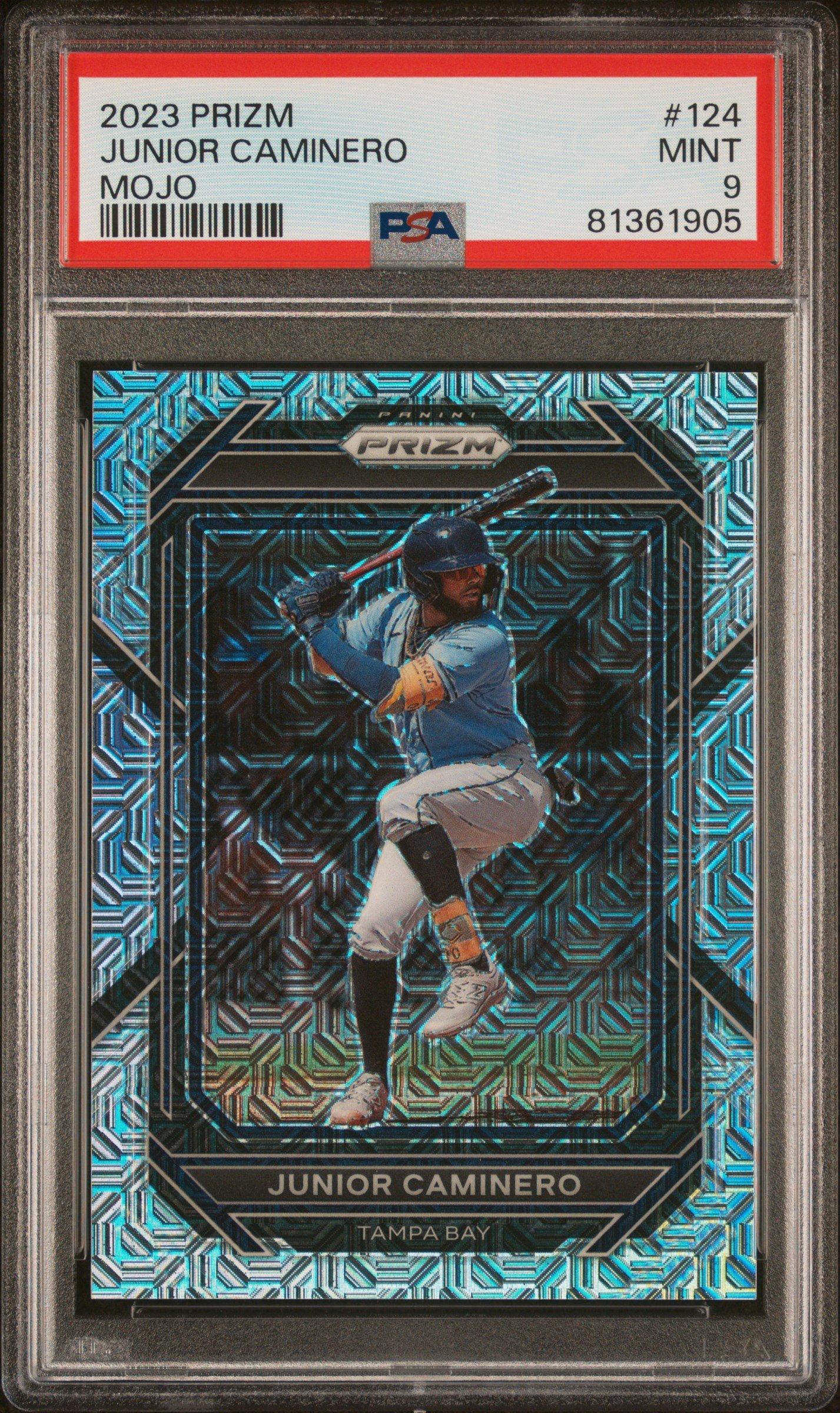 2023 Panini Prizm 124 Junior Caminero Mojo Prizm PSA 9