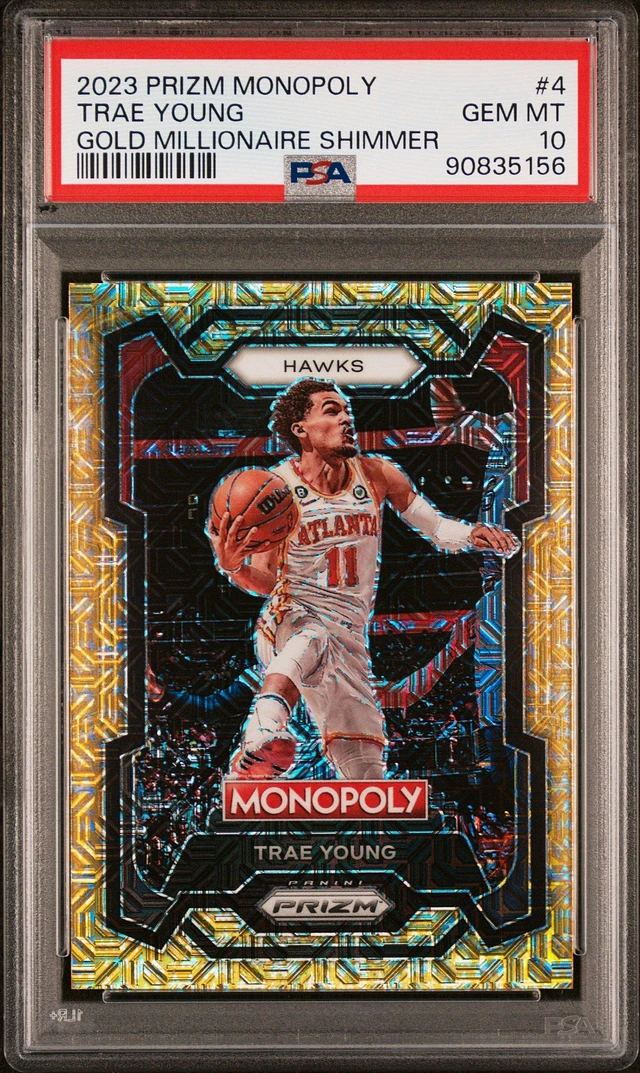 2023 Panini Prizm Monopoly 4 Trae Young Gold Millionaire Shimmer PSA 10