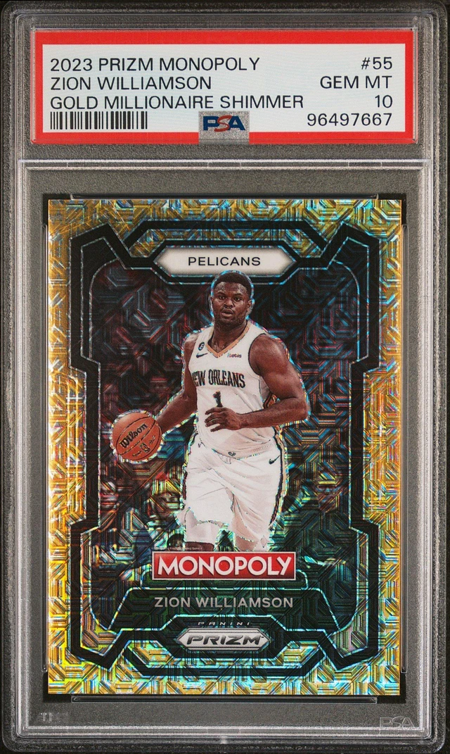 2023 Panini Prizm Monopoly 55 Zion Williamson Gold Millionaire Shimmer PSA 10