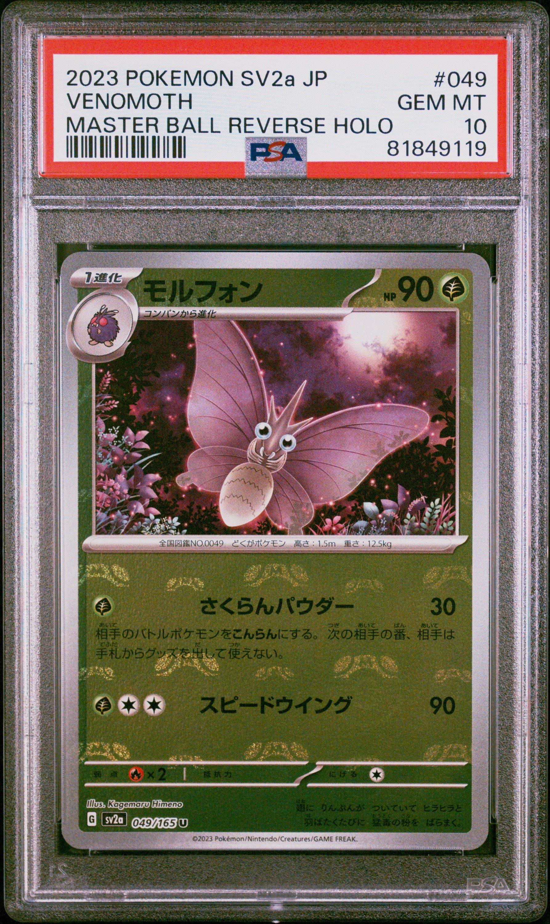 2023 Pokemon Japanese Sv2a-pokemon 151 049 Venomoth Master Ball Reverse Holo PSA 102023 Pokemon Japanese Sv2a-pokemon 151 049 Venomoth Master Ball Reverse Holo PSA 10