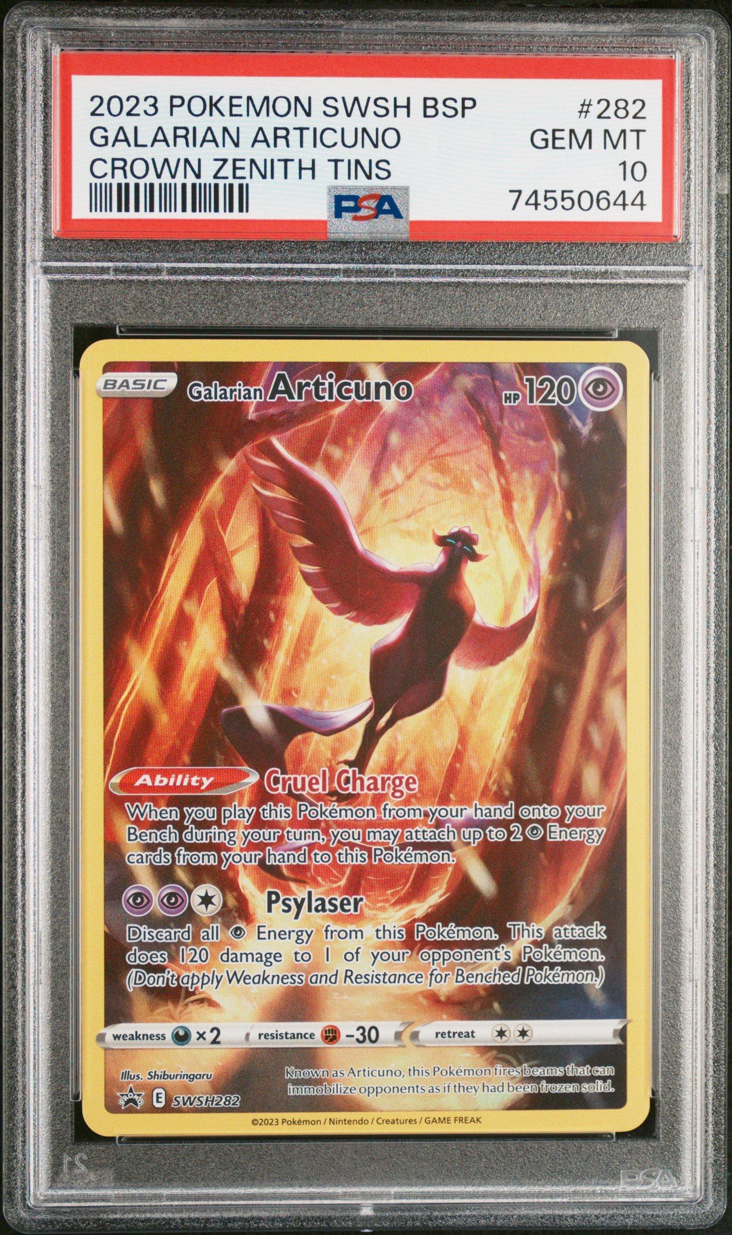 2023 Pokemon Swsh Black Star Promo 282 Galarian Articuno Crown Zenith Tins PSA