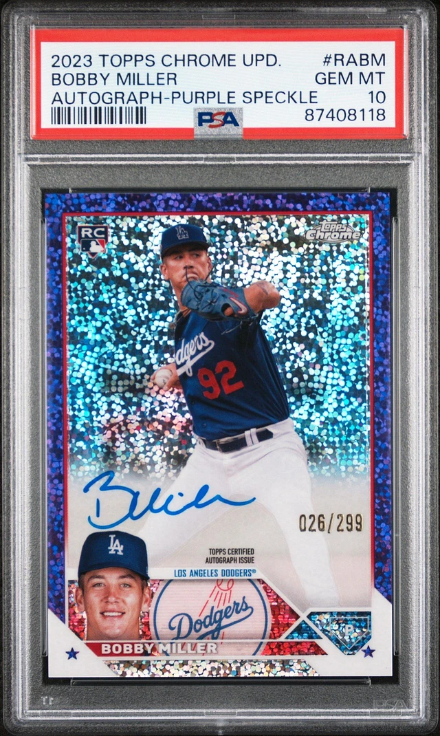 2023 Topps Chrome Update Autograph Rabm Bobby Miller Purple Speckle Refractor PSA 10