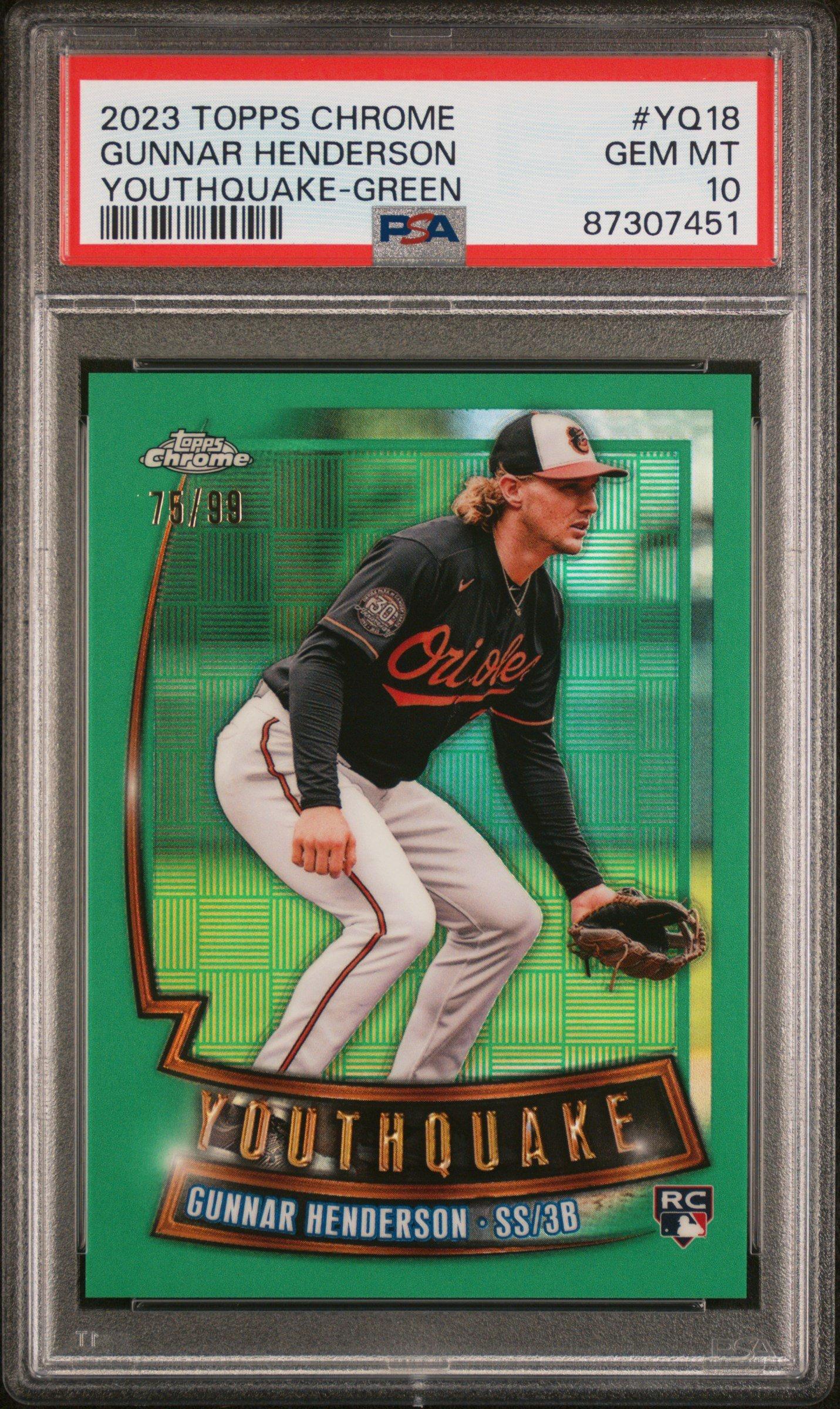 2023 Topps Chrome Youthquake Yq18 Gunnar Henderson Green Refractor PSA 102023 Topps Chrome Youthquake Yq18 Gunnar Henderson Green Refractor PSA 10