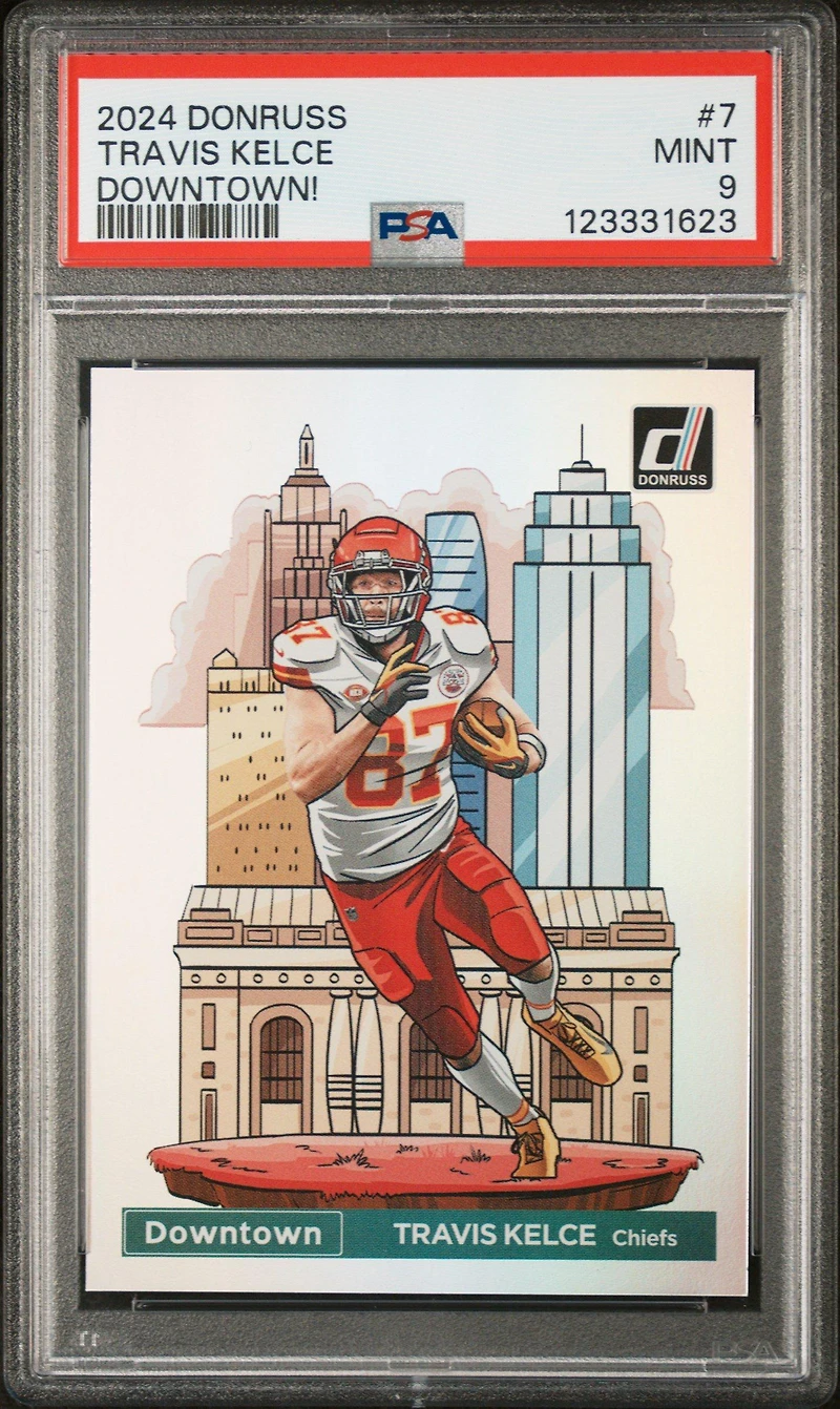 2024 Panini Donruss Downtown! 7 Travis Kelce PSA 9