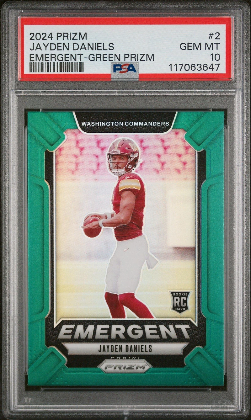 2024 Panini Prizm Emergent 2 Jayden Daniels Green Prizm PSA 10