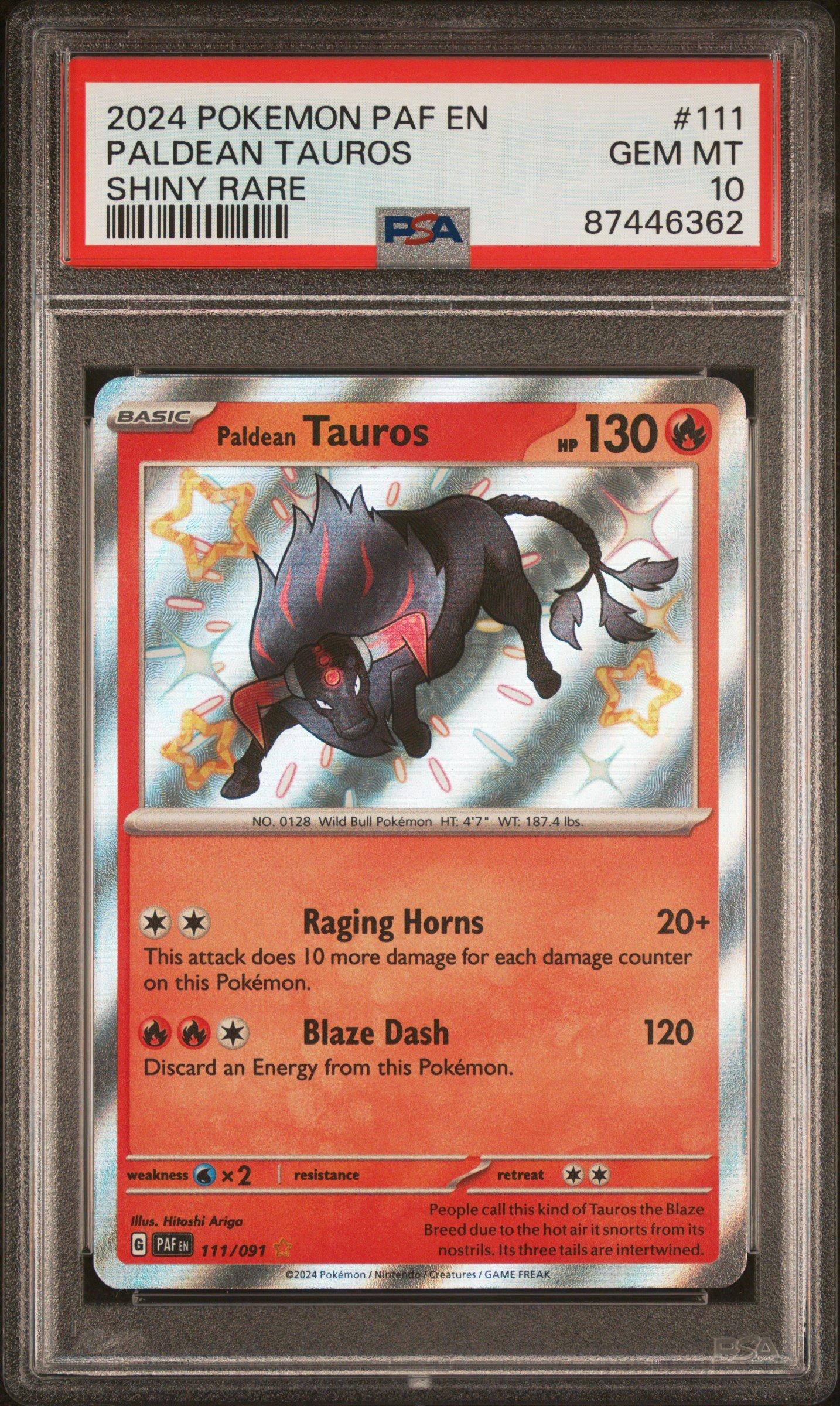 2024 Pokemon Paf En-paldean Fates 111 Paldean Tauros Shiny Rare PSA 10