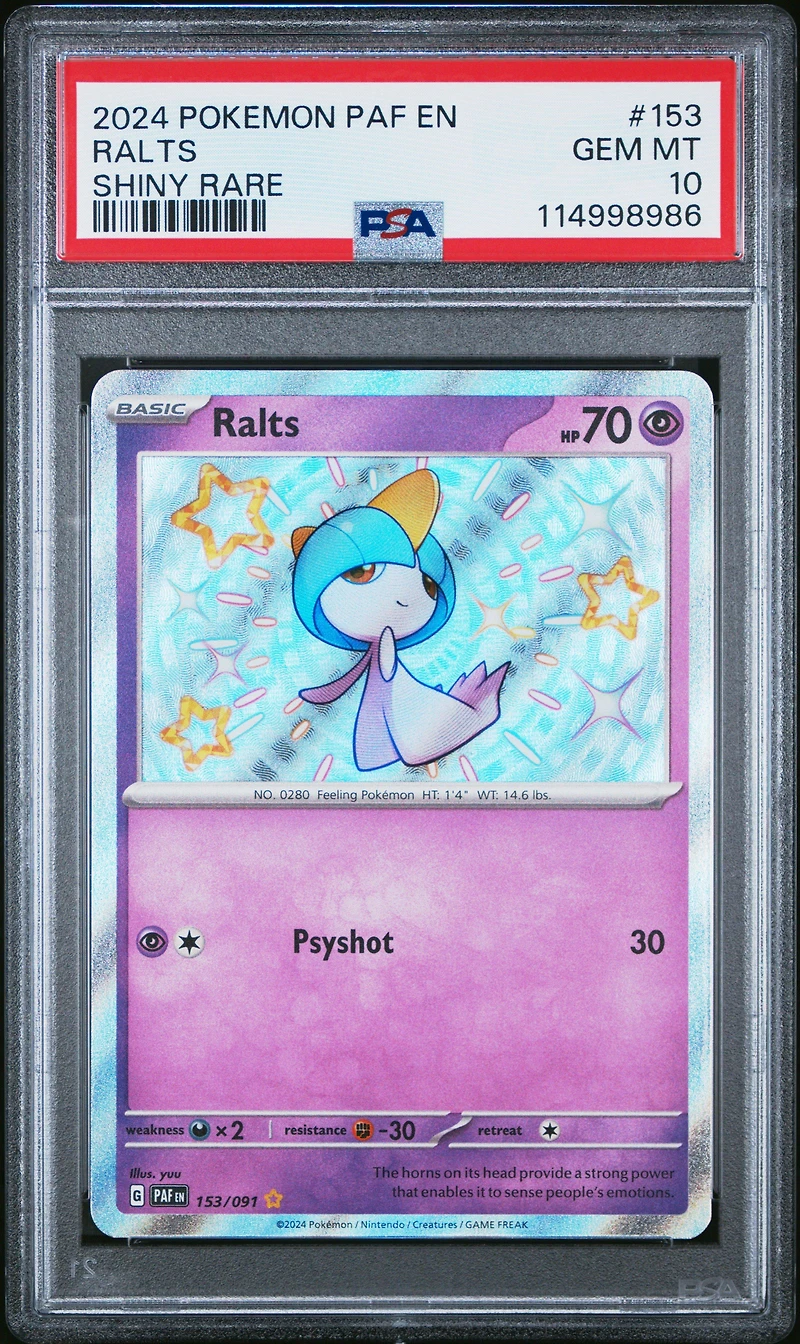 2024 Pokemon Paf En-paldean Fates 153 Ralts Shiny Rare PSA 10