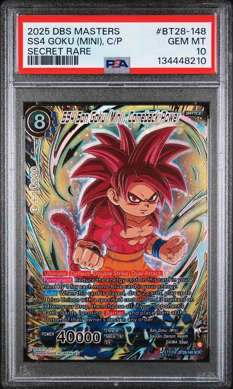 2025 Dragon Ball Super Card Game Masters Series 28 Prismatic Clash Bt28-148 Ss4 Son Goku (mini), Comeback Power Secret Rare PSA 10