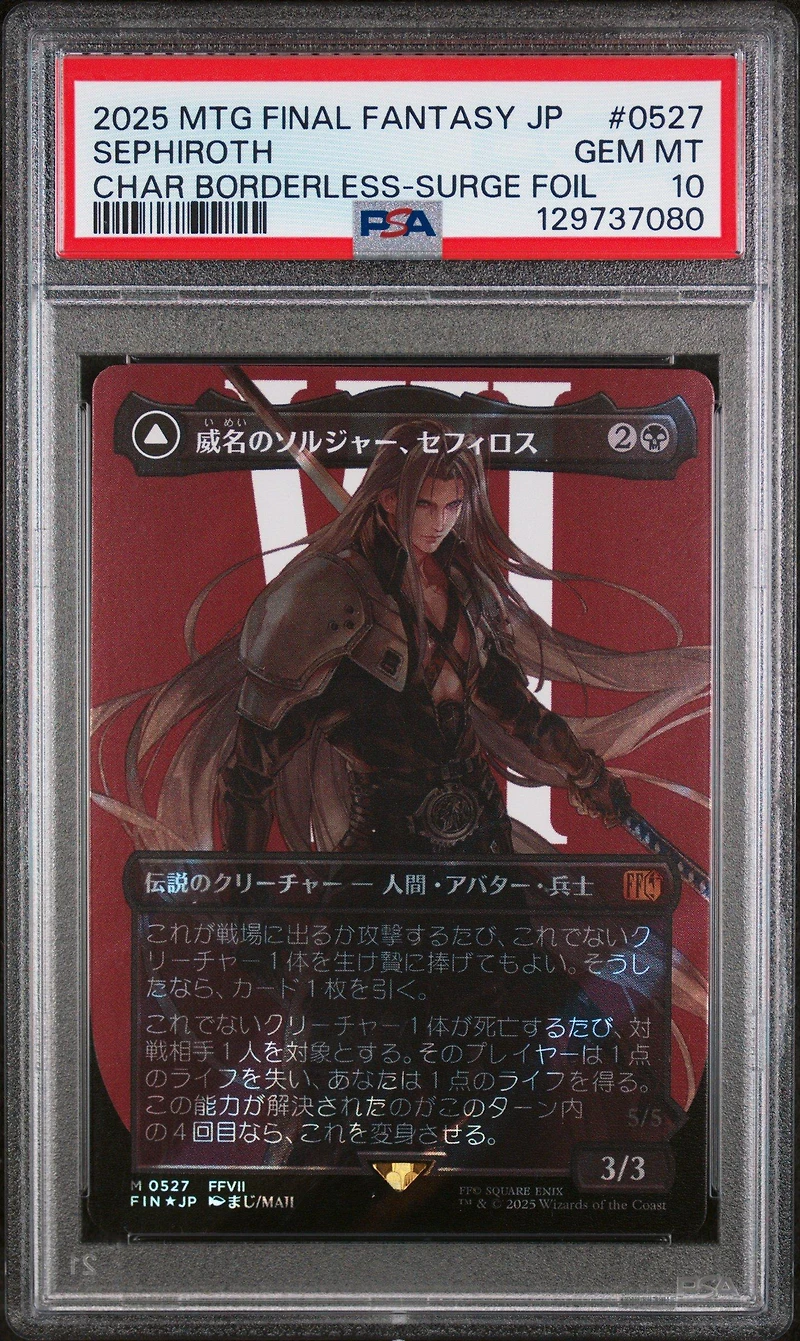 2025 Magic The Gathering Japanese Final Fantasy 0527 Sephiroth, Fabled Soldier/sephiroth, One-winged Angel Character Borderless-surge Foil PSA 10