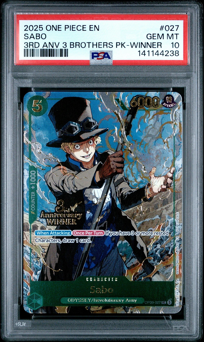 2025 One Piece 3rd Anniversary Tournament 3 Brothers Pack 027 Sabo Winner PSA 10