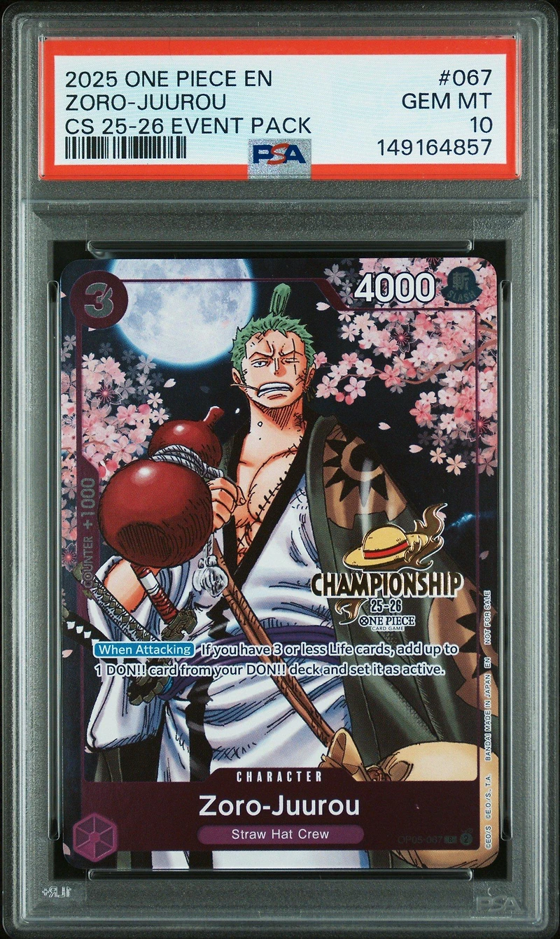 2025 One Piece Championship 2025-26 Event Pack 067 Zoro-juurou PSA 10