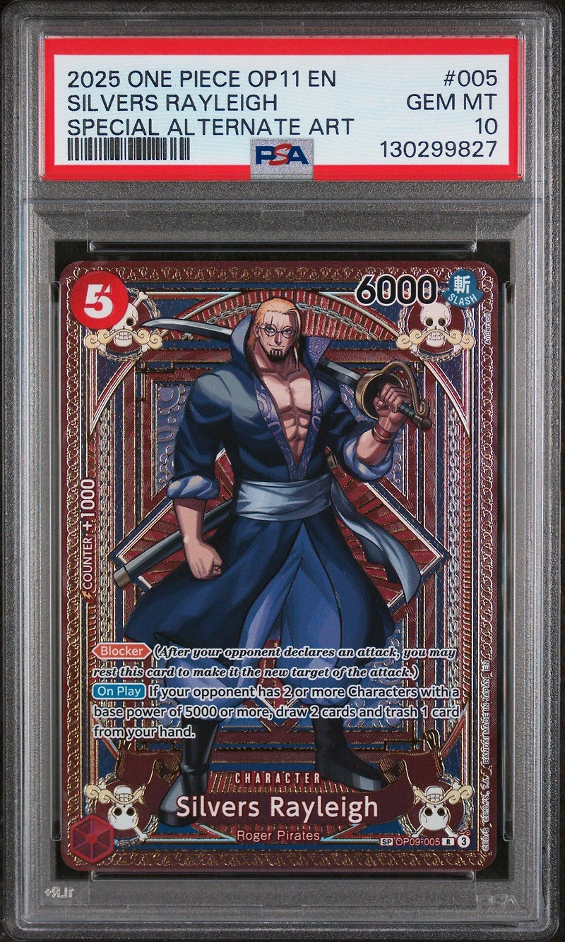 2025 One Piece Op11-a Fist Of Divine Speed 005 Silvers Rayleigh Special Alternate Art PSA 10