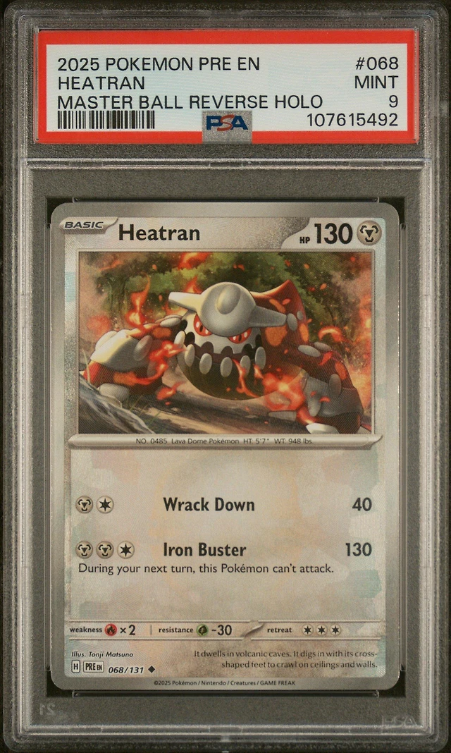 2025 Pokemon Pre En-prismatic Evolutions 068 Heatran Master Ball Reverse Holo PSA 9