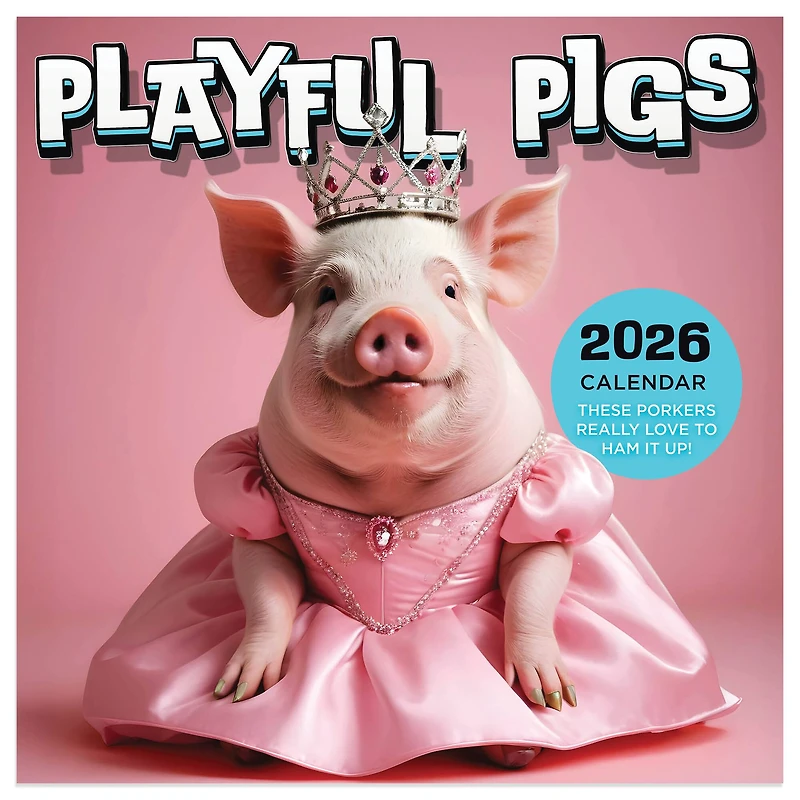 What’s cuter than a pig? A pig in people clothes! Playfully posing in fancy outfits, in the field or on the stage, these precious porkers are sure to make you squeal with delight! Our 2026 Playful Pigs 12-month mini wall calendar measures 7" x 7" (7" x 14" open) and includes twelve adorable full-color images combined with monthly calendar grids and a bonus 4-month view of January 2027 - April 2027. Printed on FSC-certified premium gloss paper.