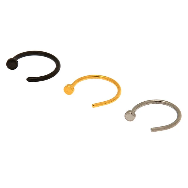 20G Mixed Metal Stainless Steel Open Nose Rings - 3 Pack