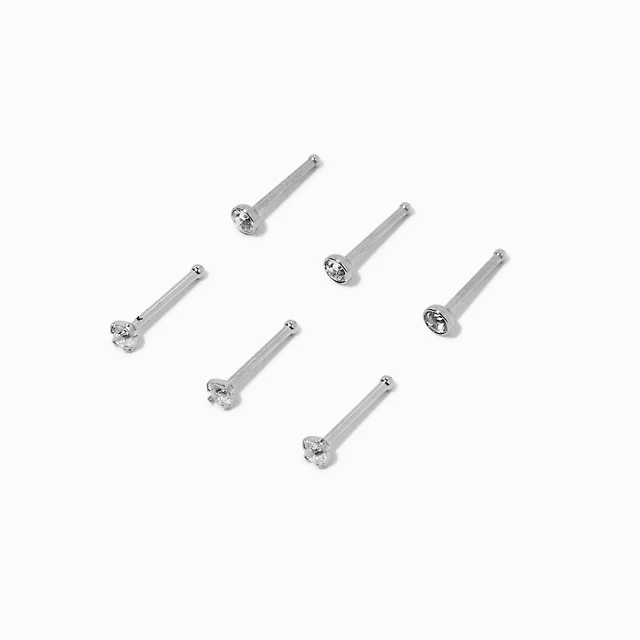 20G Silver-tone Stainless Steel Cubic Zirconia Nose Studs - 6 Pack