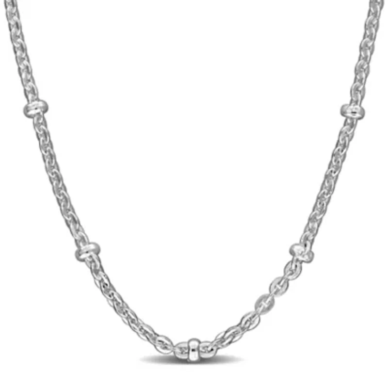 This sterling silver necklace features a 2.1 millimeter curb link chain accented with delicately placed Saturno beads, creating subtle dimension and visual interest. The polished links and beads catch light beautifully, offering a refined and modern aesthetic. Designed for comfort and durability, it rests naturally along the neckline and complements both everyday outfits and elevated styles. Available in multiple lengths, this versatile piece can be worn alone for understated sophistication or layered with other necklaces for a personalized, dynamic look, making it a timeless addition to any jewelry collection. Spring ring clasp Polished finish Warranty available, 60 days Italy Imported Product Specifications 20" Material & Care Sterling Silver Metal, Sterling silver Clean with a soft cloth.