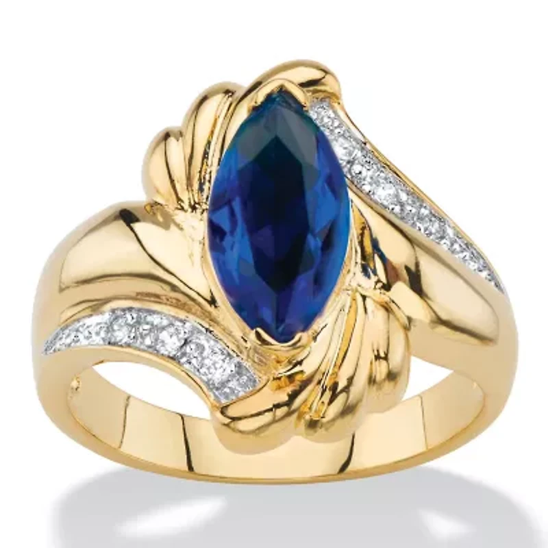 2.28 Cttw. Marquise-Cut Simulated Blue Sapphire and CZ Gold-Plated Ring