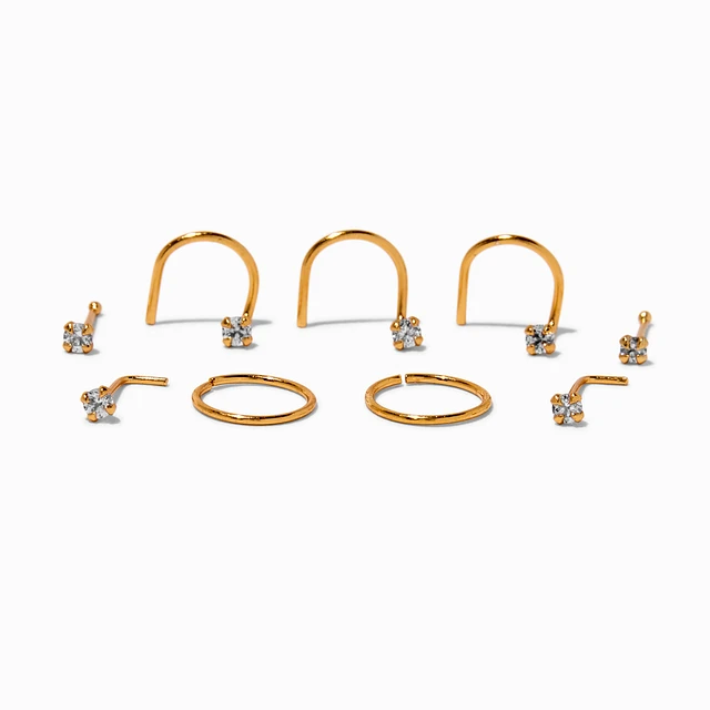 Gold Cubic Zirconia Nose Ring 6-Pack