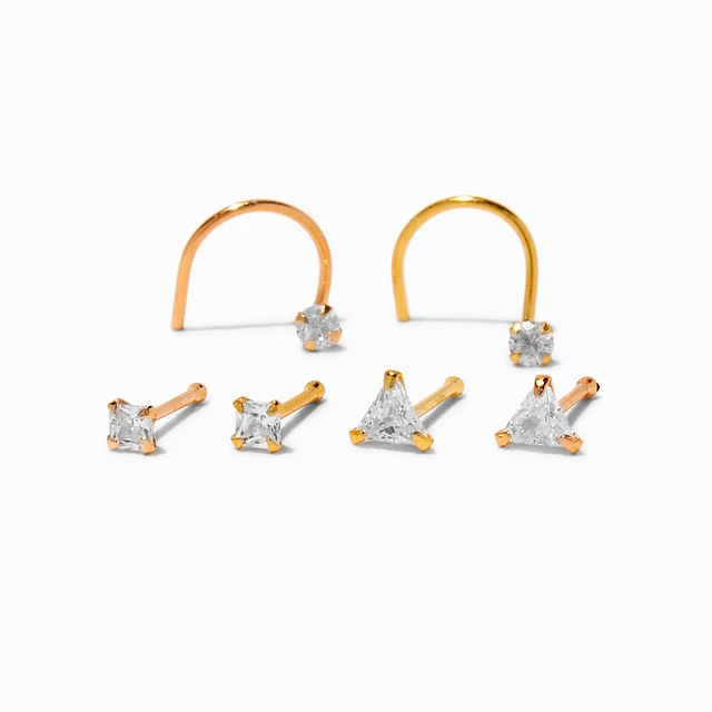 Mixed Metal Cubic Zirconia Nose Stud 6-Pack
