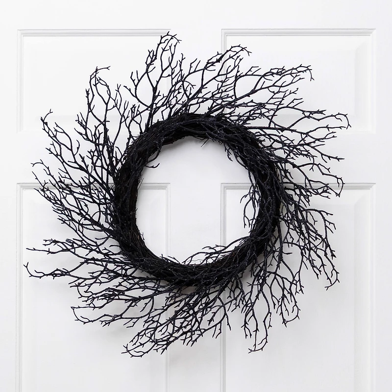 24" Black Halloween Twig Wreath