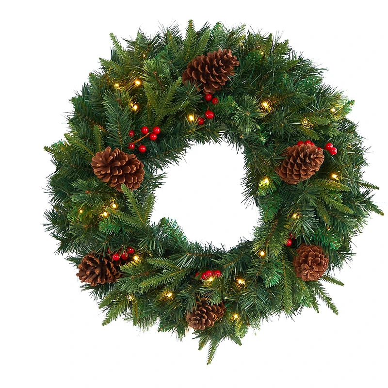 24" Clear LED Mixed Pine & Berries Christmas Wreath
