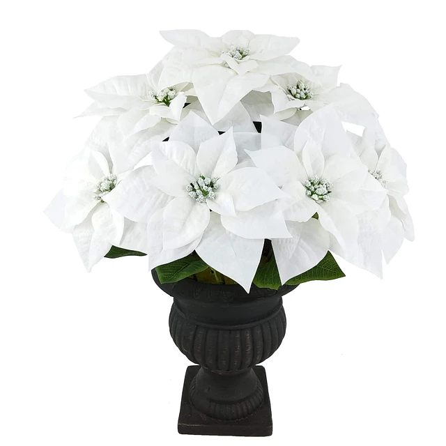 14" White Poinsettia Arrangement in Designer Silver Bowl