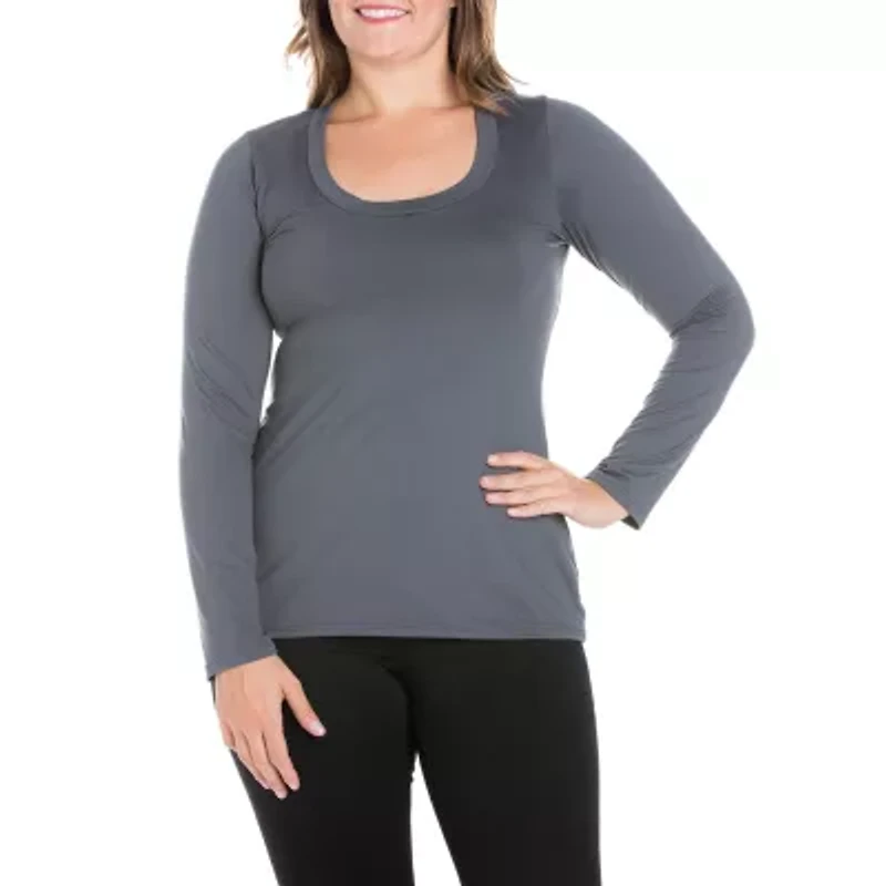 24seven Comfort Apparel Machine Washable, Poly/Spandex Blend Knit Fashion Top. Our Solid Long Sleeve Scoop Neck Top is essential to any wardrobe. This long sleeve plus size t-shirt layers beautifully and is available in six must have solid colors. The fitted yet comfortable style give this top a polished look that can be worn alone or layered.