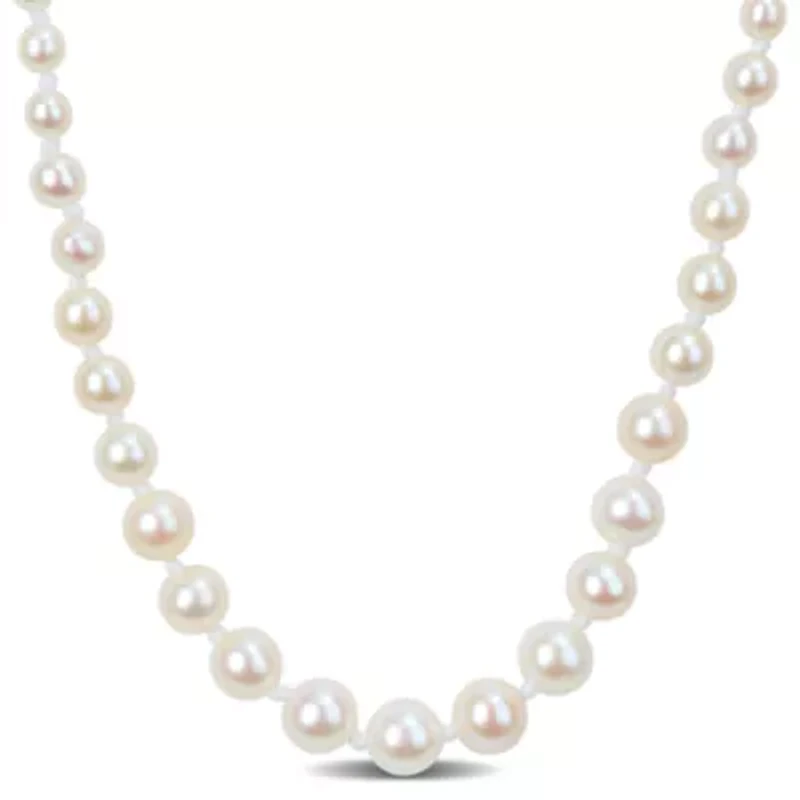 Add a timeless touch of elegance with this beautifully graduated pearl necklace. Featuring cultured freshwater pearls that gradually increase in size, it creates a graceful and refined silhouette. The soft, luminous glow of each pearl brings a classic sophistication that never goes out of style. Finished with a 10k yellow gold clasp and tag, it adds a warm and polished detail to the design. A versatile piece that embodies elegance, tradition, and enduring beauty. Lobster closure Polished finish Warranty available, 60 days Thailand Imported Product Specifications 18" Material & Care 10K Yellow Gold Metal, Yellow Gold Clean with a soft cloth.