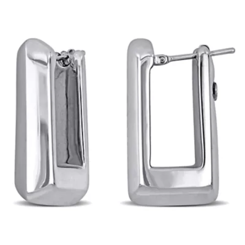 Add a modern edge to your look with these 28 mm square hoop earrings in 14K white gold, featuring a sleek geometric design for contemporary style. The hinge snap closures provide secure, comfortable wear, while the bold square shape offers a fresh twist on classic hoops. Perfect for everyday elegance or layering with other earrings, these hoops combine timeless sophistication with a striking, fashion-forward appeal. 2 Click top closure, Jewelry clasp Polished finish Warranty available, 60 days Italy Imported Product Specifications 8-mm width x 28-mm height Material & Care 14K White Gold Metal, White gold Clean with a soft cloth.