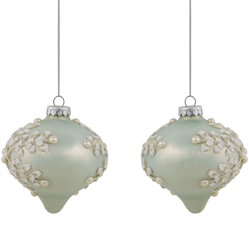 2ct. Pastel Green Icy Snowflakes Glass Onion Ornaments