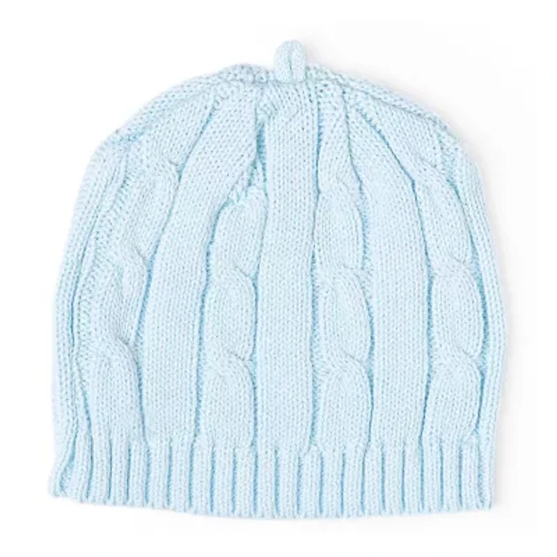 Keep your beloved little one snug as a bug in this cozy unisex cable knit beanie by 3 Stories Trading Company. Crafted from 100% cotton in a classic cable knit pattern, it also features a wide ribbed trim and has stretch to fit your baby's head comfortably.
